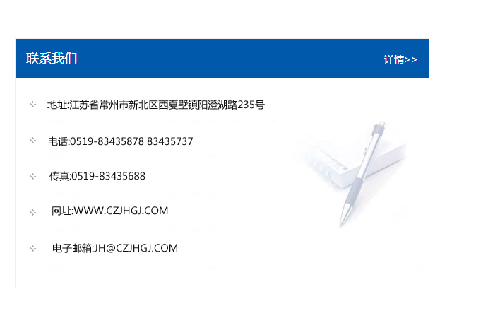 傳真:0519-83435688    郵編:213135    網址:WWW.czjhgj_com.shuailongmjg.com    電子郵箱:JH@czjhgj_com.shuailongmjg.com
